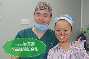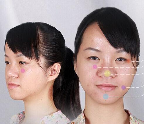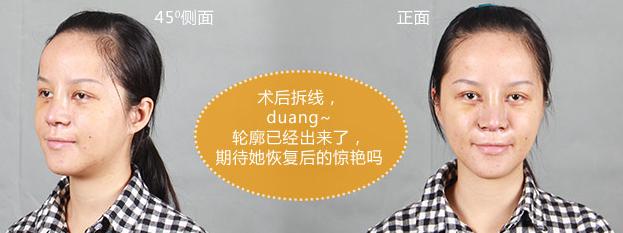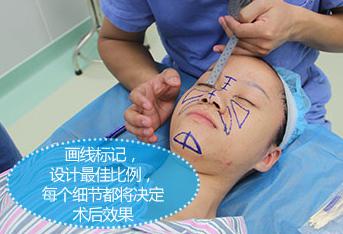 首先对她的形象进行设计,模拟术后的效果。眼部、鼻部和脸部要协调。通过对眼皮、开内眼角让无神的眼睛变大,变漂亮;全鼻塑形增强脸部立体感,从视觉上达到瘦脸效果。她的额头较高,面中部凹陷,自体脂肪移植能达到一个很好的重塑脸型的效果。她的下巴往后缩,显得下巴短,进行假体垫下巴之后会拥有一个漂亮V脸。